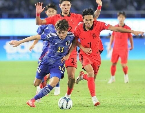 第19回アジア競技大会は28日に決勝を行い、パリオリンピック世代のU-22日本代表はU-24韓国代表に1-2で敗戦。開始2分にFW内野航太郎(筑波大)が先制ゴールを挙げるが、前半27分に追いつかれる。1-1で前半を折り返すと、後半11分に逆転ゴールを決められ、2大会連続で準優勝となった。