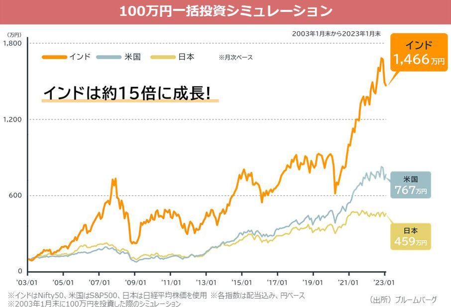 米ブルームバーグ通信が23日、報じた。景気低迷で中国や香港市場が冷え込む中、高成長が続くインドが受け皿となり、投資マネーが流れ込んでいるようだ。