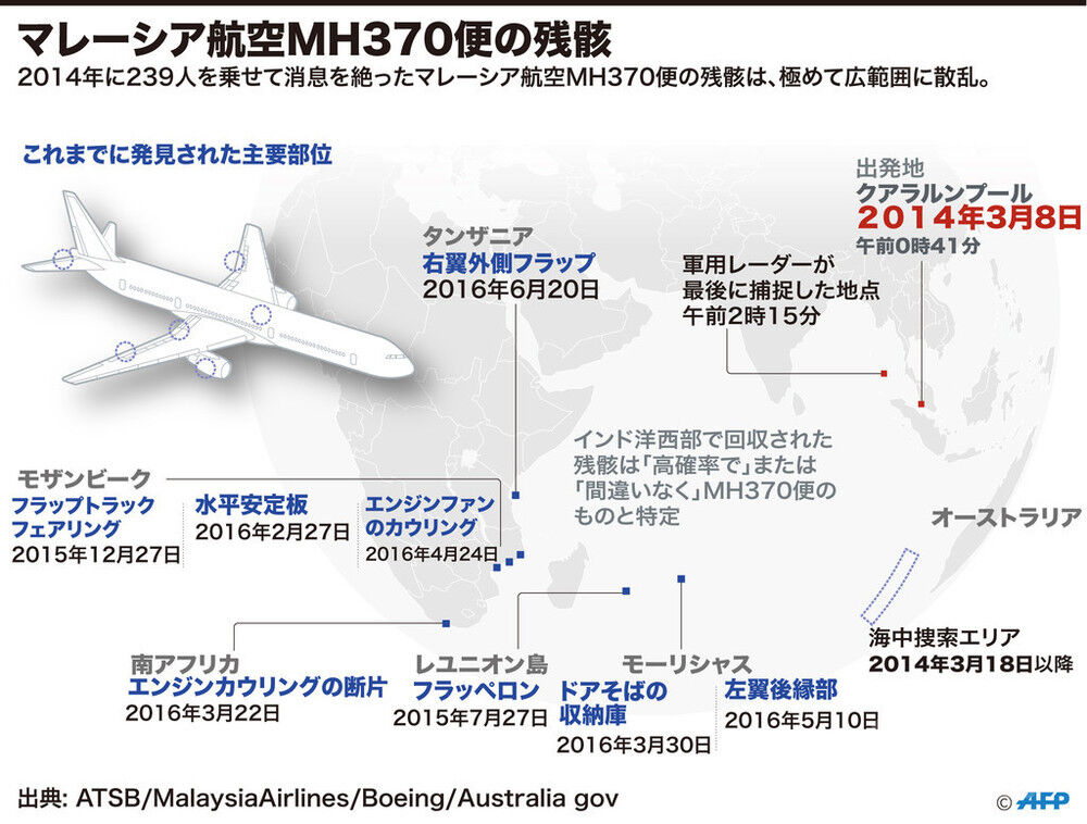 MH370便は乗客227人と乗員12人を乗せたボーイング777型機で、14年3月8日にクアラルンプールから北京に向かう途中で消息を絶った。航空史上最大のミステリーの一つとされる。