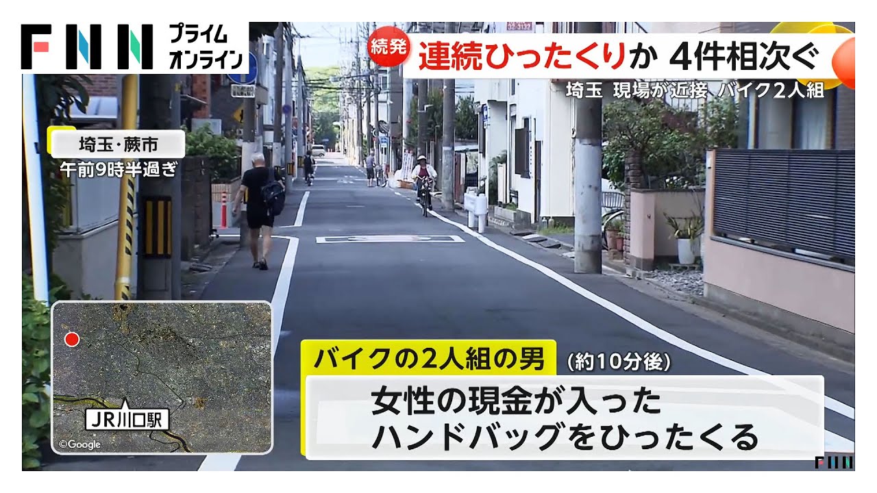 | 【悪質】未明の埼玉でバイクによるひったくり連続6件発生 防犯カメラがとらえた犯行の瞬間 専門家「かなり手慣れている」同一犯か?(FNNプライムオンライン) - dメニューニュース 【悪質】未明の埼玉でバイクによるひったくり連続6件発生 防犯カメラがとらえた犯行の瞬間 専門家「かなり手慣れている」同一犯か?(FNNプライムオンライン) dメニューニュース (出典:dメニューニュース) |