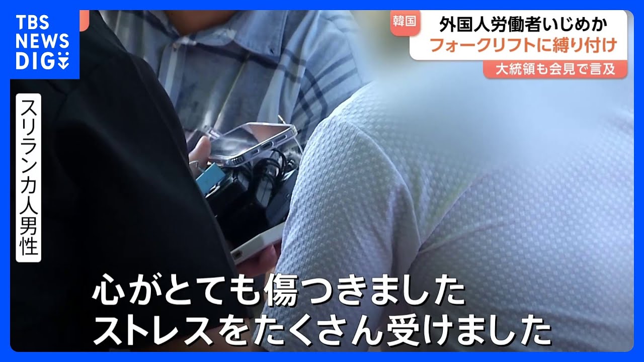 韓国の工場で、スリランカ人男性労働者がフォークリフトに吊るされるいじめ行為が起き、大統領も人権侵害として批判。