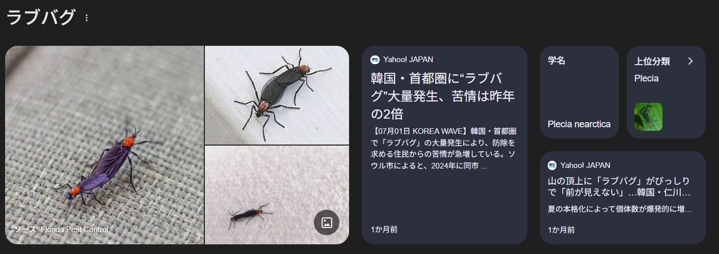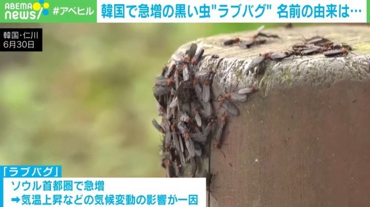 韓国で猛暑の影響で「ラブバグ」が大量発生。土壌から羽化し、死骸が山を覆う状況に。対策が求められ始め、今後も他の昆虫の発生に懸念。