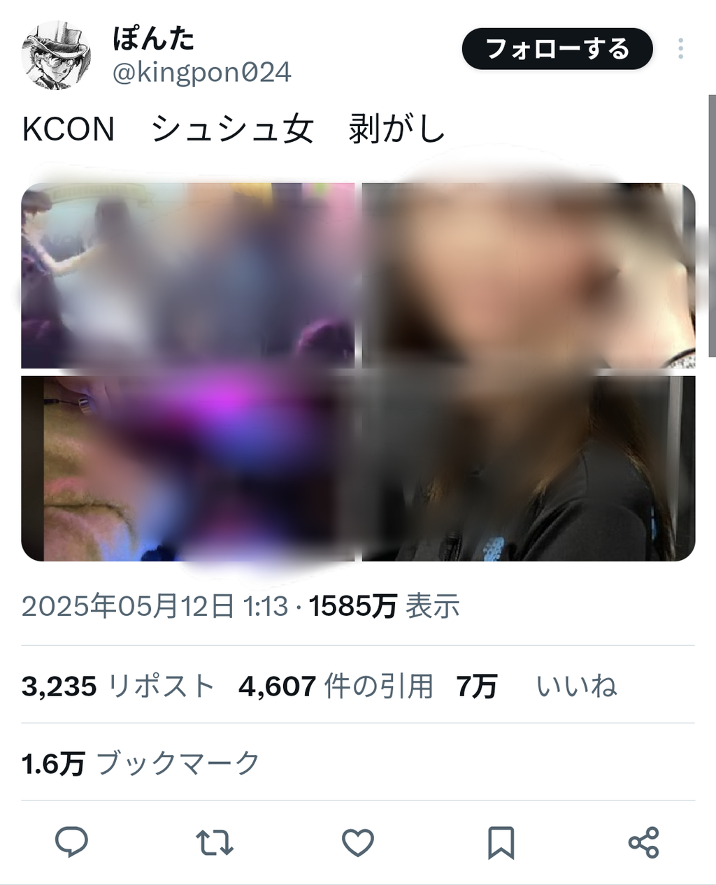KCON JAPAN 2025での「シュシュ女」スタッフの荒い剥がし方が炎上。過剰な対応にファンが怒り、ネット上でのバッシングが加速。
