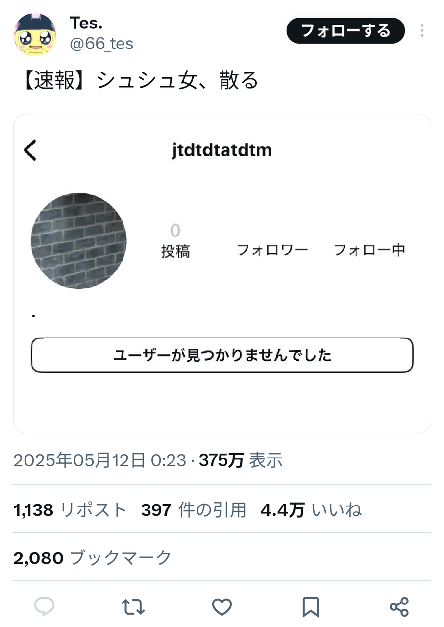 「シュシュ女」とは、髪を束ねる白いシュシュをつけてファン対応をしていた女性スタッフを指すとみられる。