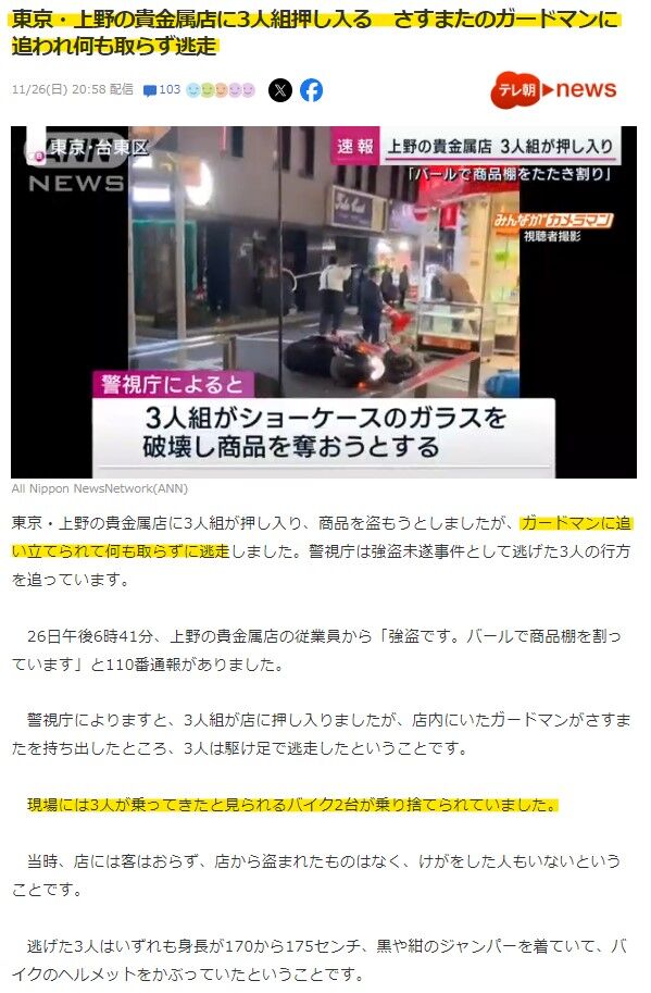 これは治安維持が手薄になってる日本でも起こる可能性がありそうだね