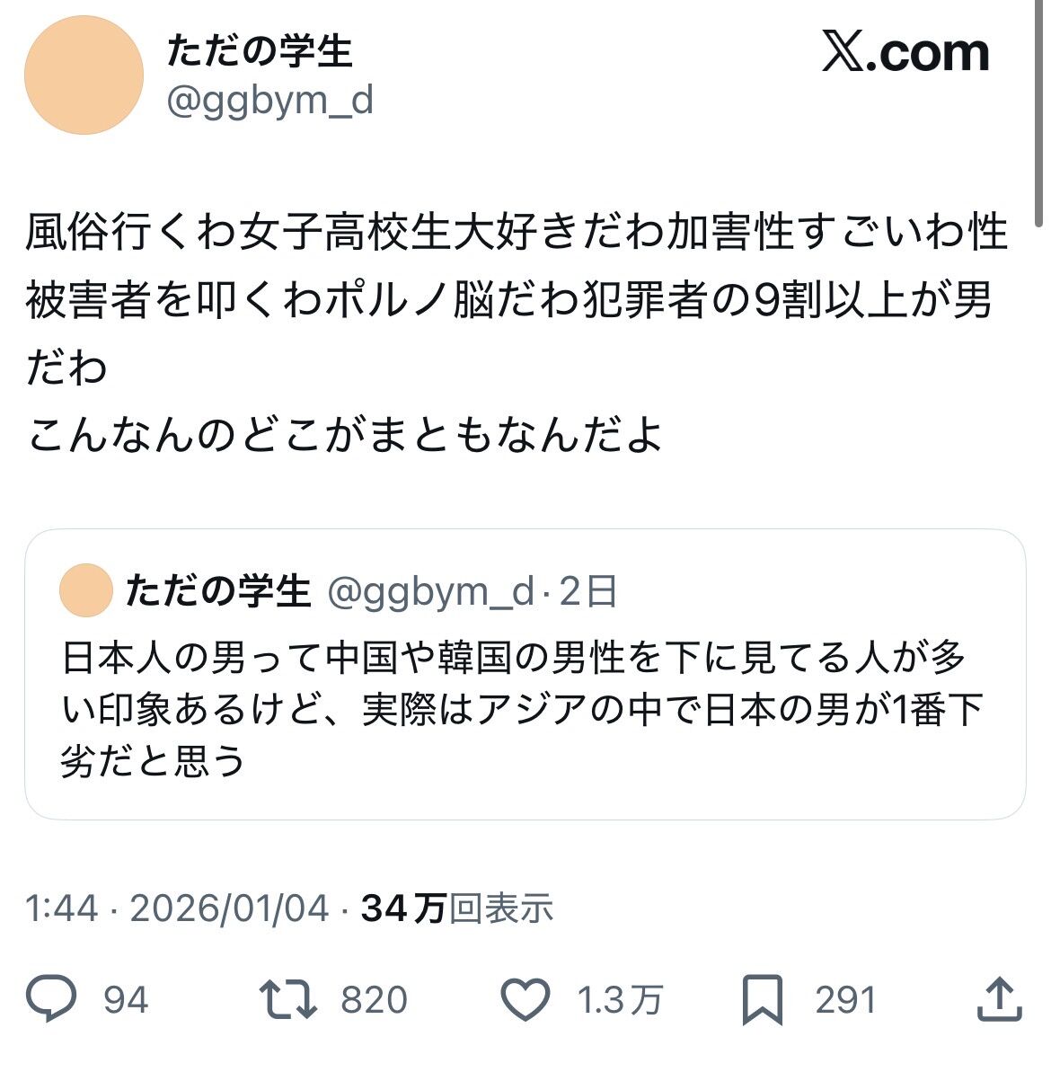 思想もなんも無いガキに平気でこうやって言われるのがヤベーって話だろ