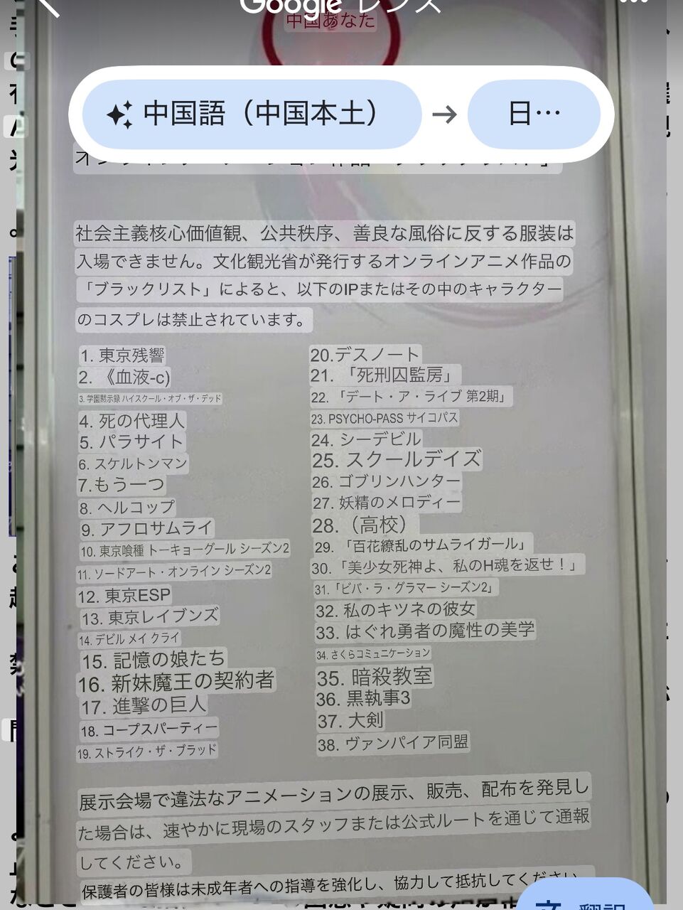 多くのアニメやコスプレ愛好者が集う中、会場内に掲示された「コスプレ禁止リスト」が、ネット上で大きな波紋を呼んでいると報じた。